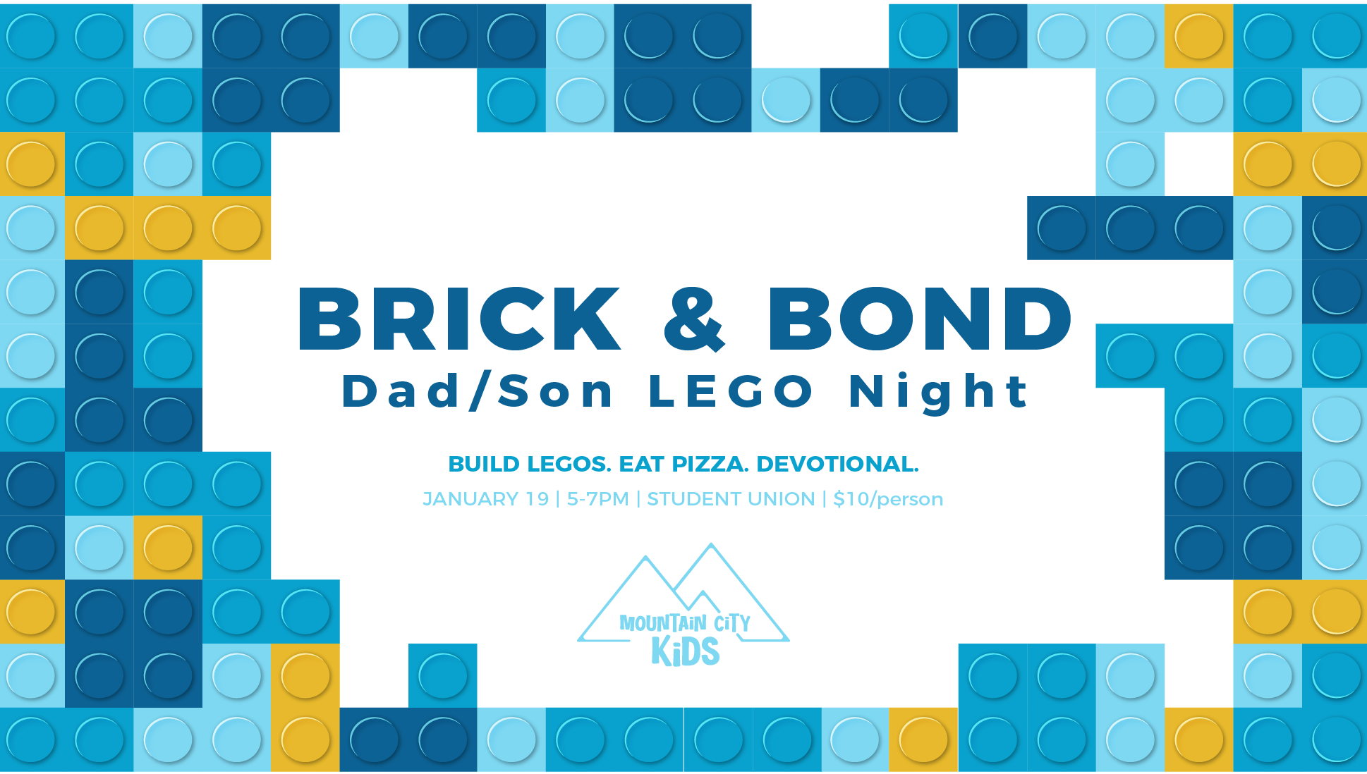 Join us for a night of fun, creativity, and connection! Dads and sons will team up to build LEGO creations, share some delicious pizza, and enjoy a short devotion focused on building strong foundations—both in our faith and in our families.